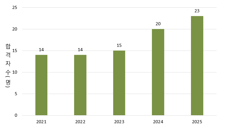 | 합격자수 | 14 | 14 | 15 | 20 | 23 |