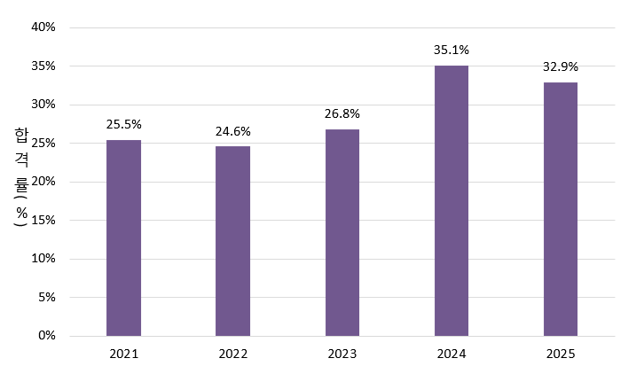 | 대비 합격률 | 25.5% | 24.6% | 26.8% | 35.1% | 32.9% |