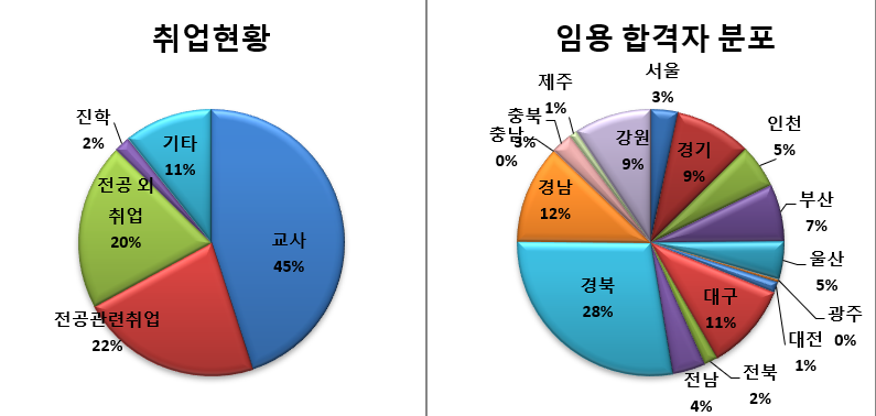 졸업자수 대비 취업현황 및 임용합격자 분포